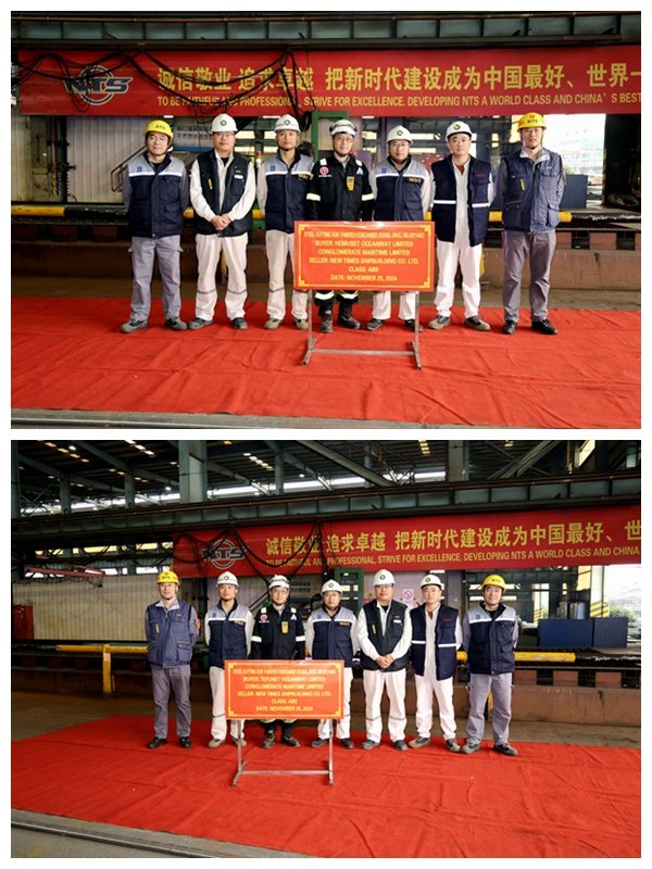 28 November 2024 On November 25, 2024, the steel cutting of two units of 11400 TEU Container Vessels bearing builder's hull nos.0211402 and 0211403 has been carried out successfully by New Times Shipbuilding Co., Ltd. The representatives from the shipyard, the Owner CONGLOMERATE MARITIME LIMITED together with the representatives from ABS classification society attended and witnessed this event.
