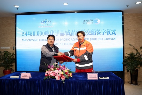 12 February 2025 On February 10, 2025, the closing ceremony for 54# 50,000 DWT Chemical/Product Oil Tanker bearing builder's hull no.0405054 was held at the meeting room on 8th floor of New Times Office Building. Our CEO Mr. Liu Haijin, Executive Deputy General Manager Mr. Zhang Yuyong and owner's representatives Mr. Ni Jie and Mr. Dino Vilicic were present. The vessel was smoothly and successfully delivered by us and accepted by the Owner.