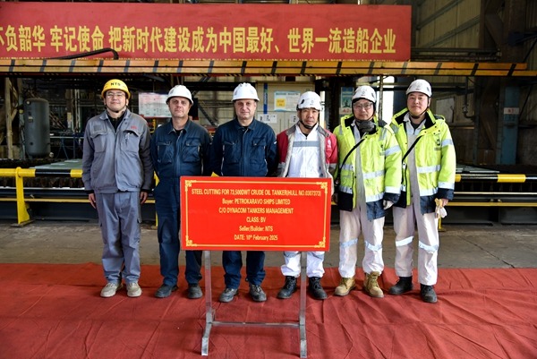 12 February 2025 On February 10, 2025, the steel cutting of one 73,500 DWT Crude Oil Tanker bearing builder's hull no.0307373 has been carried out successfully by New Times Shipbuilding Co., Ltd.. The representatives from shipyard, Dynacom Site Team and BV classification society attended and witnessed this event.