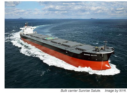 NYK and the Kansai Electric Power Co. (KEPCO; head office: Osaka; president: Makoto Yagi) have agreed to change a bulk carrier currently being used for KEPCO shipments — i.e. Maizuru Bishamon (deadweight tonnage: 88,000 tons) — to a larger vessel, Sunrise Salute (deadweight tonnage: 95,708 tons), which was delivered in December 2012.