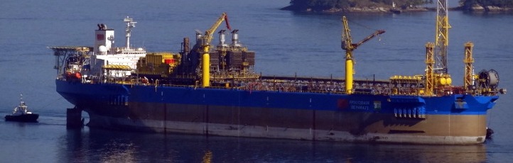 *An FPSO unit is a ship-shaped offshore installation to produce crude oil by separating solids, water, and gases from liquid drawn from reservoirs beneath the seabed and storing it until it is offloaded to shuttle tankers or export tankers.