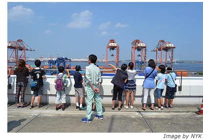 On August 7, NYK held a terminal tour for employees’ children as part of Japan’s national campaign to support the next generation. The tour was the latest proactive initiative by NYK to help employees balance work and child-raising. These initiatives enable NYK to maintain a positive employment environment in accordance with the Japanese law on “Advancement of Measures to Support Raising Next-Generation Children."*