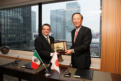 NYK has acquired 30 percent ownership of the CSI (Consorcio de Servicios Internacionales S.A. de C.V.) Group, a finished-car logistics company, and begun to participate in the CSI Group's business. A signing ceremony was held at the NYK head office in Tokyo and attended by Leon Antonio Flores Elizondo, CEO of the CSI Group, and NYK president Yasumi Kudo, among others.