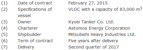 March 2, 2015 On February 27, NYK concluded a time-charter contract for a new VLGC (very large gas carrier) with Astomos Energy Corporation (Astomos; head office: Tokyo; president: Osamu Masuda), the world's pre-eminent liquefied petroleum gas (LPG) company. The new VLGC will be built by Mitsubishi Heavy Industries Ltd. and delivered in the second quarter of 2017. NYK will charter the vessel from Kyoei Tanker Co. Ltd., and from its delivery, the vessel will be assigned to a service designated in a five-year time-charter contract with Astomos. Astomos’ new medium-term plan, which starts from fiscal 2015, calls for an increase in LPG handling volume from the current 10 million tons/year to 12 million tons/year by 2017. Astomos plays an important role in the LPG business field, which is expected to continue to grow, particularly as progress is made on new LNG projects in the Middle East, the United States, West Africa, and Australia. This is the 11th VLGC for Astomos, and NYK will continue to reinforce its close, long-term relationship with the energy company. In accordance with its “More Than Shipping 2018” medium-term management plan, NYK will continue to encourage creative solutions to its efforts to contribute to stable and economical LPG transport services. Outline of contract