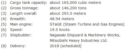 May 14, 2015 On April 30, NYK concluded a basic agreement on a time-charter contract for two new liquefied natural gas (LNG) carriers with Diamond Gas International Pte. Ltd.* NYK also concluded a contract with MI LNG Company Limited** (head office: Tokyo; president: Haruhiko Omi) for the construction of the LNG carriers. These new ships will be delivered in 2018 and assigned to transport LNG for the Cameron LNG Project in the U.S. state of Louisiana which Mitsubishi Corporation (head office: Tokyo; president and CEO: Ken Kobayashi) under the ship management by NYK. The new vessels will have apple-shaped tanks as part of the Sayaringo series of tanks, which have greater LNG-carrying capacity. These next-generation carriers will also have a structure that reduces ship weight and air resistance, in addition to a hybrid propulsion system combining a steam turbine and engines that can be fired by gas (STaGE; Steam Turbine and Gas Engines), resulting in dramatic cuts in fuel consumption and CO2 emissions. In accordance with its “More Than Shipping 2018” medium-term management plan, NYK will continue its efforts to be a part of stable and economical LNG transport services. * Diamond Gas International Pte. Ltd. A Singapore-based wholly owned subsidiary of the Mitsubishi Corporation. ** MI LNG Company Limited A joint venture established in April 2013 by Mitsubishi Heavy Industries Ltd. (equity ownership 51%) and Imabari Shipbuilding Co. Ltd. (49%) for designing and marketing new LNG carriers. Outline of LNG Carriers