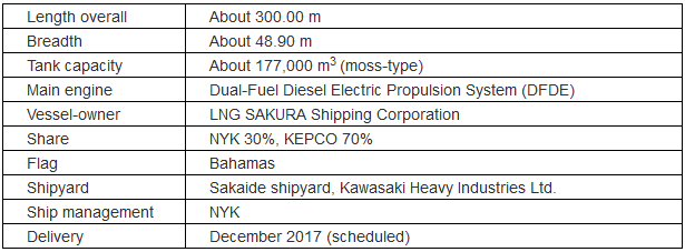 December 14, 2016 NYK has agreed to joint ownership of a liquefied natural gas (LNG) carrier with the Kansai Electric Power Co., Inc. (KEPCO; head office: Osaka; president and director: Shigeki Iwane) through a vessel-owner company shared by the two companies (NYK 30%, KEPCO 70%). This co-ownership is the first between NYK and KEPCO, and is expected to lead to a stronger relationship among the two companies. The vessel is being built at the Sakaide shipyard of Kawasaki Heavy Industries Ltd. and upon completion in late 2017 will be assigned to the Cove Point LNG project in the United States to transport LNG for 20 years. The new ship will be equipped with a dual-fuel diesel electric propulsion engine that reduces fuel consumption over that of a conventional steam turbine engine. Moreover, the vessel suppresses the boil-off rate of the LNG in the cargo tank to 0.08 percent of tank volume per day, the world’s lowest level. These advanced technologies mitigate environmental burdens and improve operational efficiency for LNG transportation. NYK will continue to make use of its 30-plus years of experience in LNG transport to provide stable energy transportation for society. Outline of the New LNG Carrier