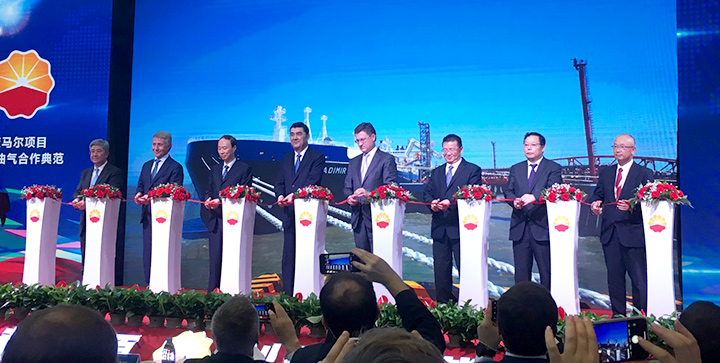 China COSCO Shipping, Executive Vice President, Sun Jiakang (first from left) PAO Novatek, Chairman of the Management Board Leonid Mikhelson (second from left) Director of the National Energy Administration of China, Nur Bekri (fourth from left) Minister of Energy of Russia, Mr. Alexander Novak (fourth from right) CNPC, Board Director, President, Zhang Jianhua (third from right) MOL, Senior Managing Executive Officer, Takeshi Hashimoto (first from right) Image by NYK.