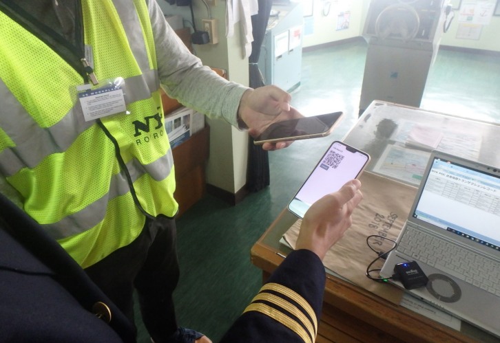 3. Testing From August to the end of September, NYK teamed with Japan Card Network Co. Ltd. (JCN)** to conduct several tests. The team examined the feasibility and effectiveness of the introduction of e-money that can be exchanged for cash, the establishment of an environment that allows the crew to use e-money on board, and an application (patent pending) that enables e-money to be easily managed.