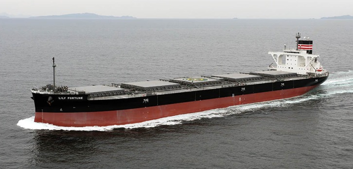 Image by NYK Group. About Lily Fortune Length Overall: 235.00 meters Breadth: 43.00 meters Summer Draft: 12.85 meters Gross Tonnage: 52,318 tons Deadweight Tonnage: 91,443 metric tons Builder: Oshima Shipbuilding Co. Ltd. Flag state: Marshall Islands * Scrubber system A system that effectively addresses the strengthened SOx (sulfur oxides) fuel regulation that entered into force in January. Scrubber systems use seawater and chemicals to remove sulfur from ship exhaust gases, effectively eliminating 97% of SOx emissions. ** SOx Global Cap regulations SOx emission regulations based on the 2008 amendment of the 1997 Protocol on Ship Pollution Prevention (Annex VI of the MARPOL Convention). From January 1, 2020, the allowable limit of sulfur in ship fuel oil was reduced from 3.5% to 0.5%. *** Rudder bulb Equipment that improves propulsion efficiency by controlling the water flow generated behind the propeller. NYK Group, press release