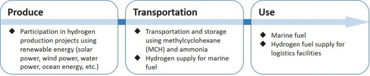 Hydrogen supply chain in which NYK may participate The NYK Group is dedicated to achieving the SDGs through its business activities and its medium-term management plan "Staying Ahead 2022 with Digitalization and Green." Among them, NYK places climate change as one of the most important issues, is promoting the conversion to alternative fuels to aid marine-fuel decarbonization, and is contributing to the conservation of the global environment. NYK's membership in this Council will contribute to the below SDGs.