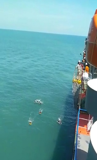 Transfer to Indonesian Coast Guard vessel. Image by NYK. NYK Group, press release
