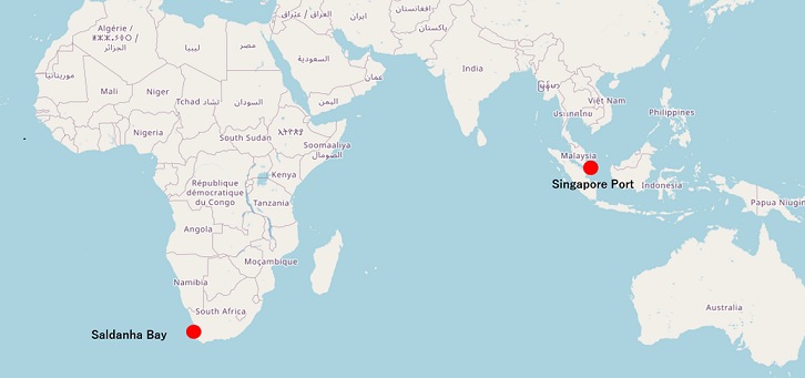 NYK Conducts Trial Use of Biofuel to Advance Decarbonization Jun. 29, 2021 In June, NYK bulk carrier Frontier Jacaranda conducted a trial use of biofuel made from waste cooking oil collected and refined in Singapore. The test run was performed in cooperation with Anglo American, a global mining company, and Toyota Tsusho, a biofuel supplier, on a route to the Saldanha Bay, South Africa. This is the second test run performed, following one conducted by NYK bulk carrier Frontier Sky in Rotterdam port in 2019. Biofuel is a fuel that is derived from renewable sources - in this case, waste oils such as used cooking oil. Biofuels are considered to be carbon-neutral because the carbon dioxide that is absorbed by the source of the biomass is equal to the carbon dioxide that is released when the fuel is burned, thus helping the fuel to gain more attention around the world. In addition, because the emission of sulphur oxides (SOx) from biofuel is significantly lower compared to conventional fossil fuel, using biofuel helps meet regulations entering into force in 2020 capping sulphur content in marine fuels.* The biofuel used in this trial is made from waste cooking oil collected and refined in Singapore. The oil was originally planned to be disposed of, but is now being recycled and used in an environment-friendly way, thus contributing to the circular economy. NYK is looking to contribute to the decarbonization of the shipping industry by accelerating the conversion of ships to alternative fuels through a series of biofuel trials at the port of Singapore, the world's largest port of refueling. On February 3, NYK released the NYK Group ESG Story, which aims to further integrate ESG into the company’s management strategy and promotes activities that contribute to the achievement of the SDGs (Sustainable Development Goals) through business activities. To strongly promote ESG management, the NYK Group will encourage new value creation as a sustainable solution provider through a business strategy that includes the introduction of next-generation fuels, such as biofuel, which has a low environmental impact. * SOx emission requirement A regulation that tightens the sulfur content of fuel oil from 3.5% or less to 0.5% or less. During bunkering Video by NYK Location