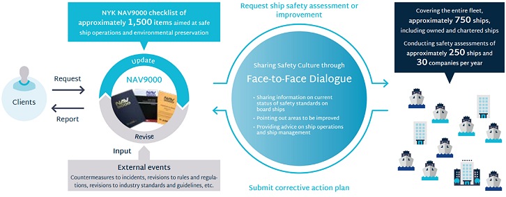 NYK Holds Annual Fleet Safety Management Meeting with 92 Shipowners and Ship-Management Companies July 04, 2022 On July 1, NYK held its annual fleet safety management meeting with domestic and overseas shipowners and ship-management companies. At this year's meeting, which was conducted online, safety activities, including accident case studies to foster and improve safety awareness, were shared. The meeting was conducted in two parts, one in Japanese and one in English on the same day. 309 people from 92 companies in Japan and overseas participated. This annual fleet safety management meeting is part of NYK's Remember Naka-no-Se safety campaign. Based on the lessons learned from the Diamond Grace oil spill in Tokyo Bay in July 1997,* this campaign is held every year with the purpose of reconfirming with shipowners, management companies, and other partners the importance of safe operation. This meeting comprised an agenda that included accident case studies, NYK's safety efforts, and a review of last year's safety activities, as well as crew change issues due to the COVID-19 pandemic, NAV9000** quality assurance activities, and the deliberation status of the 78th session of the Marine Environment Protection Committee (MEPC). For the NYK Group, safety is an immovable core tenet that we consider to be the foundation upon which ESG management exists. NYK will continue to cooperate with partner companies to engage in sea shipping services with the aim of achieving zero serious accidents. In February 2021, NYK released the "NYK Group ESG Story," which aims to further integrate ESG into the company's management strategy and promotes activities that contribute to the achievement of the SDGs through business activities. In March this year, NYK released the updated “NYK Group ESG Story 2022,” which introduces initiatives for integrating ESG into the Group's management strategies set forth in the "NYK Group ESG Story" and provides a partial explanation of the Group's sustainable growth strategy from a long-term perspective. To strongly promote ESG management, NYK will continue to create new value as a sustainable solution provider. The NYK Group ESG Story A guideline detailing concrete efforts to integrate ESG into management strategies of the NYK Group. Details: https://www.nyk.com/english/news/2021/esg-story_01.html The NYK Group ESG Story 2022 Details: https://www.nyk.com/english/news/2022/20220324_01.html Safety Campaign To ensure that the lessons learned from the Diamond Grace oil spill on July 2, 1997, remain fresh, NYK conducts a two-month safety campaign every year from July 1. This is the 25th year this campaign has been held. During the campaign period, we hold this fleet safety management meeting, the NYK president exchanges opinions with ship captains and chief engineers at a round-table conference, and we conduct accident-response training that simulates serious accidents such as ship groundings and collisions. ** NAV9000 The NYK Group's unique quality assurance activities formulated in 1998 to achieve safe operation. Based on the assessment of the ship and management company, we work with our partners to foster a culture of safety through dialogue with shipowners and management companies to improve safety quality and prevent accidents.