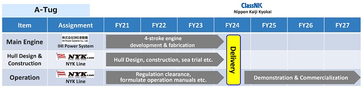 To replace the entire engine, including the main engine and fuel tank, the engine room will be cut to remove the existing LNG-fueled equipment and install the new ammonia-fueled machinery. The new engine has been tested at IHI Power Systems' Ota Plant (Gunma Prefecture) to confirm virtually zero emissions from the unburned ammonia and the nitrous oxide (N2O), which has a greenhouse effect about 300 times greater than carbon dioxide (CO2). A-tug is scheduled for delivery in June 2024. The vessel will continue to be operated by Shin-Nihon Kaiyosha to verify its decarbonization effect and operational safety as the world's first ammonia-fueled vessel.
