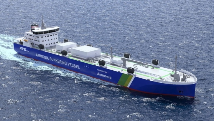 Illustration of the Ammonia-Fuelled Ammonia Bunkering Vessel (AF-ABV) designed by LMG Marin. Image by NYK. Leading the Green Transition