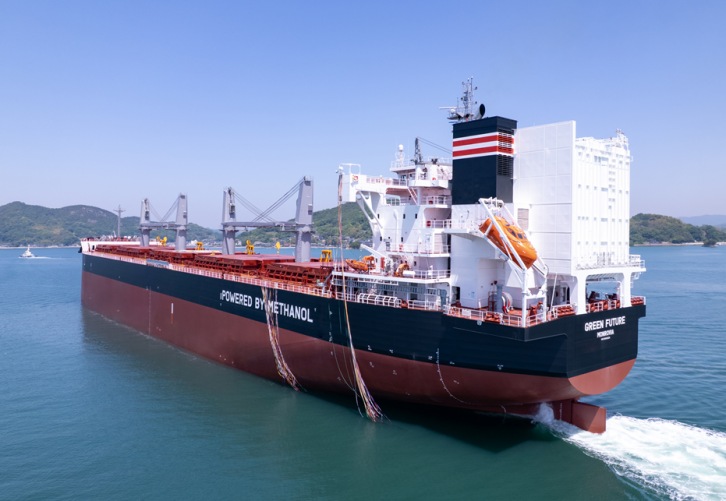 At the ceremony, Yuko Tsutsui, Managing Executive Officer and Chief Executive of Sustainability & Transformation Headquarters of NYK, named the vessel "Green Future." This vessel is the first bulk carrier in the NYK Group to be equipped with a dual-fuel engine that uses methanol and fuel oil. Methanol has a lower environmental impact than fuel oil, and by using bio-methanol and e-methanol produced using hydrogen derived from renewable energy sources and recovered carbon dioxide, the vessel achieves significant reductions in greenhouse gas emissions.