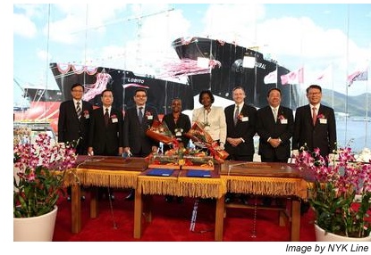 On November 1, a naming ceremony was held at the Geoje Island shipyard of Samsung Heavy Industries, Ltd. (Samsung) in Korea for two LNG vessels being built for joint owners NYK LNG (Atlantic) Ltd. (headquarters: London, UK), a wholly owned subsidiary of NYK; Mitsui & Co. Ltd. (headquarters: Chiyoda-ku, Tokyo); and Teekay Corporation (headquarters: Vancouver, Canada). The vessels have been chartered by Angola LNG Supply Services (ALSS; headquarters: Houston, U.S) and will ship the LNG produced by Angola LNG Ltd.