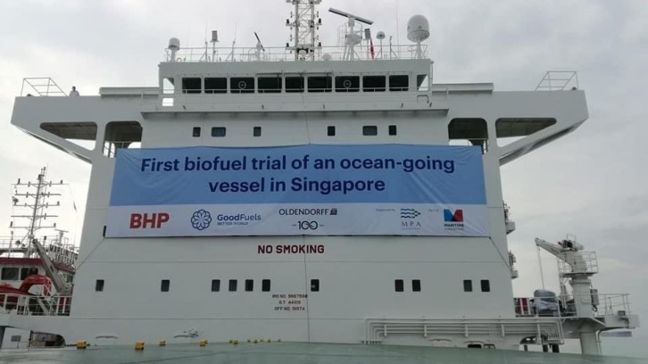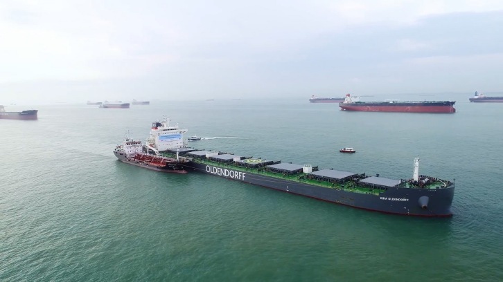 15th April 2021 Oldendorff Carriers, together with global resources company BHP, advanced biofuels pioneer GoodFuels (GF) and with the support of the Maritime and Port Authority of Singapore (MPA), has successfully conducted the first marine biofuel trial involving an ocean-going vessel bunkered in Singapore. The vessel selected for the biofuel trial was one of the company's eco-Kamsarmaxes, Kira Oldendorff. The 2020-built 81,290 tdw dry bulk carrier was bunkered with "drop-in" advanced biofuel to be blended with conventional fossil fuels. Minor modifications were carried out to burn the biofuel blend efficiently, and monitoring instruments were installed to capture the trial data as accurately as possible. In line with our decarbonisation strategy, the company is committed to work with partners, authorities and stakeholders to find the best ways to reduce GHG emissions in our shipping operations. The key objectives of the biofuel bunkering trial include safety, understanding the behaviour of the fuel (such as emissions), assessing engine and vessel operational performance, as well as exploring the merits and challenges of biofuels as a marine fuel. Oldendorff Carriers Singapore's Managing Director, Alexander Vajsova-Jones stressed the importance of collaborating with the right partners: "Oldendorff Carriers and BHP's views on a greener future are mutually aligned and being historically close partners, it made this trial a natural fit. GF are leaders in biofuels and early movers in this segment and felt they were an excellent choice, while MPA are strong supporters of green initiatives and are always instrumental in supporting industry participants in the ‘shipping capital of the world'." “We are thrilled to have been selected to participate in this biofuel trial with our close partners, and pleased that the bunkering happened in Singapore. It's a small but necessary step in our common goal to reduce our carbon footprint,” Alexander Vajsova-Jones added.