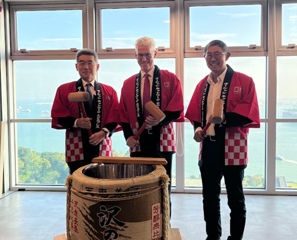 Ocean Network Express Celebrates 5th Anniversary Singapore - 9 June 2023 Ocean Network Express (ONE) celebrated its 5th anniversary at its ONE Green office in Singapore on 7 June. There were more than 150 guests at the anniversary celebration, including government officials, valued partners, and customers. As part of the celebration, a traditional Japanese ceremony, called Kagami-Biraki, was performed. In this ceremony, a sake barrel is opened with a wooden mallet. It is believed that breaking the sake barrel will bring good luck and prosperity. ONE CEO Jeremy Nixon, Maritime and Port Authority of Singapore (MPA) Chairman Niam Chiang Meng, and Ambassador Extraordinary and Plenipotentiary of Japan to Singapore Hiroshi Ishikawa, performed the Kagami-Biraki in happi coats - traditional Japanese coats worn during festivals and ceremonies. As part of the celebration, guests were then invited to a sake toast. In his opening speech, ONE CEO Jeremy Nixon said, "I am honoured to welcome you all to our 5th anniversary celebration. It has been an incredible journey for ONE over the past five years. We have faced many challenges, but we have also achieved many successes. I am proud of what we have accomplished together." MPA Chairman Niam Chiang Meng said, "Congratulations to ONE on this significant milestone. ONE has grown steadily over the years and is one of the largest liner operators in Singapore today, contributing in areas of maritime decarbonisation, innovation and digitalisation, and manpower development. We thank ONE for their vote of confidence in Singapore and look forward to our collaboration in the years to come." Ambassador of Japan to Singapore Hiroshi Ishikawa said, "I would like to extend my warmest congratulations to Ocean Network Express on its 5th anniversary. ONE has played a vital role in the global economy, and I am confident that it will continue to do so in the years to come. Thank you for your continued contributions to Singapore and the world." ONE was founded in April 2018 through the merger of three Japanese container shipping companies: MOL, NYK, and K Line. The company has a fleet of over 200 vessels, plying about 170 routes across more than 120 countries. ONE has faced a number of challenges over the past five years, including the COVID-19 pandemic and the global supply chain disruptions. Despite these challenges, the company has continued to grow. As part of its efforts to become net zero by 2050, it is investing in new technologies and solutions to enhance its operation efficiency and sustainability. ONE is also expanding its network of services to better serve valued customers and reach out to new markets. ONE's strong track record of growth and innovation, positions it to play a significant role in the development of the global economy in years to come.