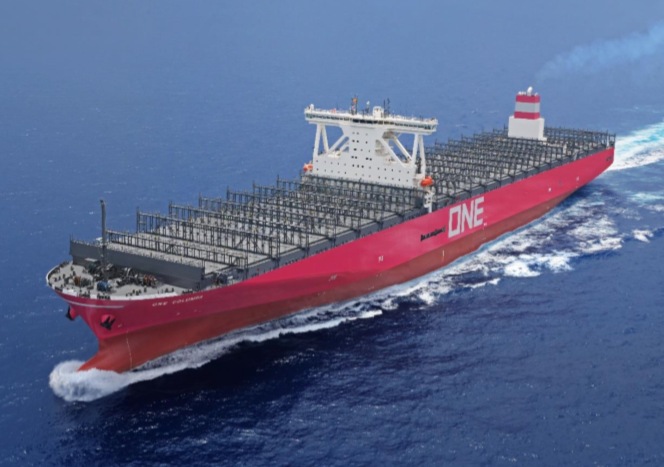 ONE COLUMBA during the sea-trial. Image by Ocean Network Express Pte. Ltd. Ocean Network Express Pte. Ltd. press release |