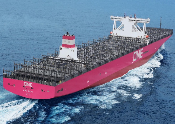 Delivery of 14,000-TEU Containership “ONE GRUS” Kure in Hiroshima, Japan - Feb 01, 2019 Ocean Network Express Pte. Ltd. (ONE) is pleased to announce that ONE GRUS, with a carrying capacity of 14,000 TEU, has been successfully delivered at Kure Shipyard of Japan Marine United Corporation. The sublet owner is Nippon Yusen Kaisha. This is ONE’s first delivery this year, and the 5th newly built 14,000 TEU magenta containership, after ONE COLUMBA (delivery date on 16th November 2018). It is equipped with outstanding safety and environmentally-friendly capabilities such as structural arrest technology and highly efficient welding technology. ONE GRUS employs a hull form that improves efficiency in cargo-loading, which is achieved by minimized engine-room space. It also has excellent structural safety due to its Crack Arrest Technology. Additionally, the vessel is equipped with world’sfirst “dual rating system” technologyin its main diesel engine, with two selected output for high or low rating. This allows flexibility in operations and improvein fuel efficiency, resulting in significant reduction of greenhouse gases.The navigation bridge adopted the Integrated Navigation System (INS), which consolidates functions of vessel systems to efficiently reduce the workload of operators. Furthermore, for safety improvement, a wide window is also newly employed for widen visibilitywhich aid the vessel operators from the wing of vessel’s bridge when berthing and unberthing. She will phase in THE Alliance’s Asia to Europe 5 (FE5) service, with its port rotation Leam Chabang, Cai Mep, Singapore, Colombo, Rotterdam, Hamburg, Antwerp, Southampton,Jeddah, Colombo, Singapore and Laem Chabang. Vessel’s Specifications of ONE GRUS