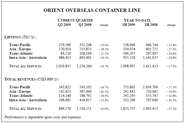 update for OOCL for the second quarter of 2009 (ended 30th June 2009). The comparative figures