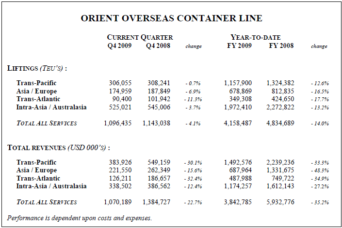 for OOCL for the fourth quarter of 2009 (ended 31st December 2009). The comparative figures for