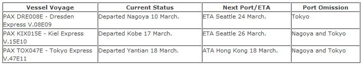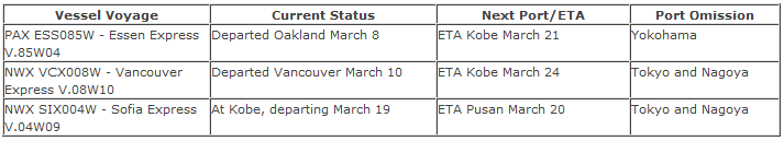 1. Please be informed that according to the latest information vessels listed below will omit their Tokyo/ Nagoya/ Yokohama calls.