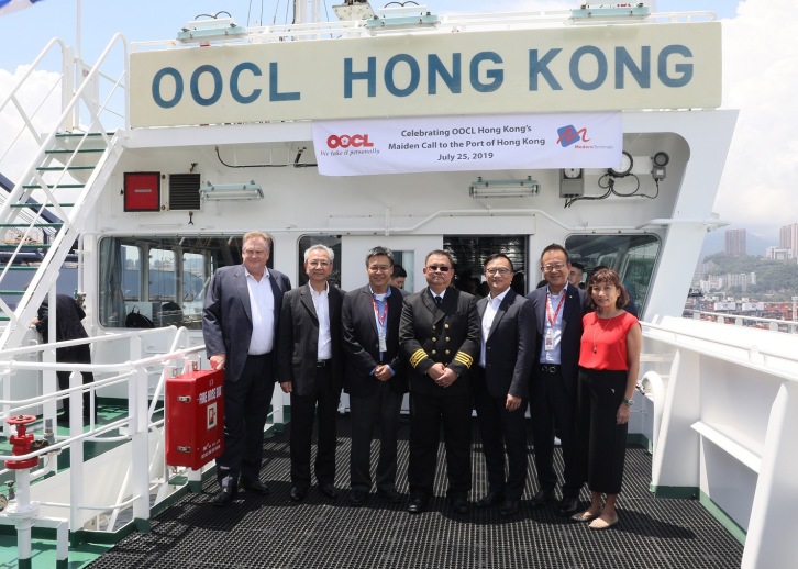 July 25, 2019 OOCL is proud to announce that the OOCL Hong Kong made her maiden call to the Port of Hong Kong today and was warmly welcomed by many friends, colleagues, and the community who went to marvel at one of the world’s largest containerships with a carrying capacity of 21,413 TEU. The vessel’s debut to the city of Hong Kong, an entrepôt well known for its long and vibrant history in international trade and commerce, has a very special meaning for OOCL. Since the company’s establishment in 1969, OOCL has been deeply rooted in Asia’s World City, connecting local businesses from all sectors to markets around the world. Containerships like the OOCL Hong Kong are important ambassadors of world trade, and as a home carrier, we are very proud to have this vessel carry the name of Hong Kong, flying the flag of Hong Kong, and continue serving the industries of Hong Kong. In the celebrations for this event, OOCL was joined by many business partners and special guests at a reception on board the OOCL Hong Kong to welcome a titan among the world’s fleet of mega containerships. Mr. Andy Tung, Co-Chief Executive Officer of OOCL, hosted the event and made the following remarks to the enthusiastic group in the audience: “This is truly a milestone event for us at OOCL because the last time we welcomed a vessel with the same name in Hong Kong was back in 1995 which coincided with our company’s 25th anniversary. It was a brand-new ship, with a capacity of 4,960 TEU, and warmly welcomed by a large crowd right here at the Hong Kong port in Kwai Chung. Twenty-five years later, we are here once again, welcoming the OOCL Hong Kong to the port on our 50th anniversary! This maiden call has special meaning to not only the people at OOCL, but to many citizens living here who may see the vessel as the pride of Hong Kong.” In 1969, OOCL was the first Asian shipping line to ship goods by container. This first container sailing saw only 13 TEUs transported from Hong Kong to Long Beach, California – a far cry by today’s standard of moving goods in hundreds of thousands of TEUs a day! OOCL and Hong Kong have indeed come a long way since that first sailing. Today, Hong Kong has one of the busiest and most efficient international container ports in the world, providing more than 300 liner services a week and linking Hong Kong to some 450 destinations worldwide.