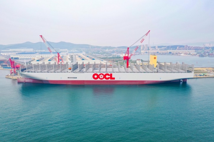 "OOCL Piraeus" is the first of six 24,188 TEU vessels ordered by OOCL and delivered by DACKS. Image by OOCL.