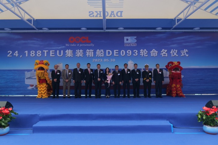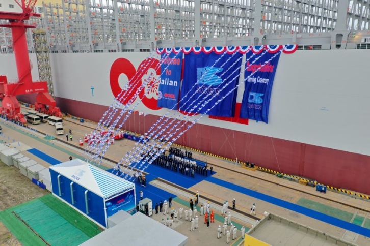 The naming ceremony was held at the No.1 outfitting quay of DACKS in Dalian, China. Image by OOCL.