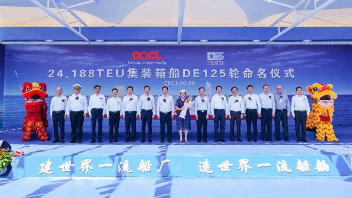 The naming ceremony was held at the No.3 outfitting quay of DACKS in Dalian, China. Image by OOCL.