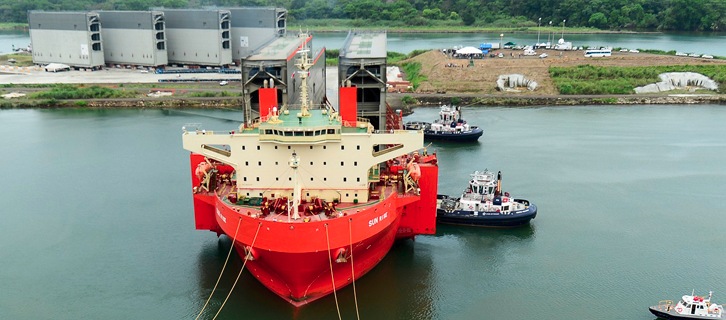 While the two gates destined for the Atlantic complex will remain in the staging area until the time of their installation, the other two will be transferred to the Pacific site once the installation of the concrete supports are completed in the dock built for their unloading. Gate fabrication, which started in October 2011, is being performed by Italian subcontractor Cimolai SpA. The new locks will operate with a redundant rolling gate system, with a total of 8 gates in each locks complex. The first shipment of rolling gates arrived in Panama on August 20, 2013. The third shipment, with two Type C and two Type F rolling gates is scheduled to arrive in Canal waters in October of this year. Grupo Unidos por el Canal is the contractor responsible for the design and construction of the Third Set of Locks. Following an agreement signed between the contractor and the Panama Canal Authority, all rolling gates must be in Panama by February 2015. A total of 76.3 percent progress has been achieved under the Canal Expansion Program as of May 31, 2014. About the Panama Canal Authority (ACP) The ACP is the autonomous agency of the Government of Panama in charge of managing, operating and maintaining the Panama Canal. The operation of the ACP is based on its organic law and the regulations approved by its Board of Directors. For more information, please refer to the ACP's website: http://www.pancanal.com/. You can also follow us on Twitter @thepanamacanal. Panama Canal Authority press release |