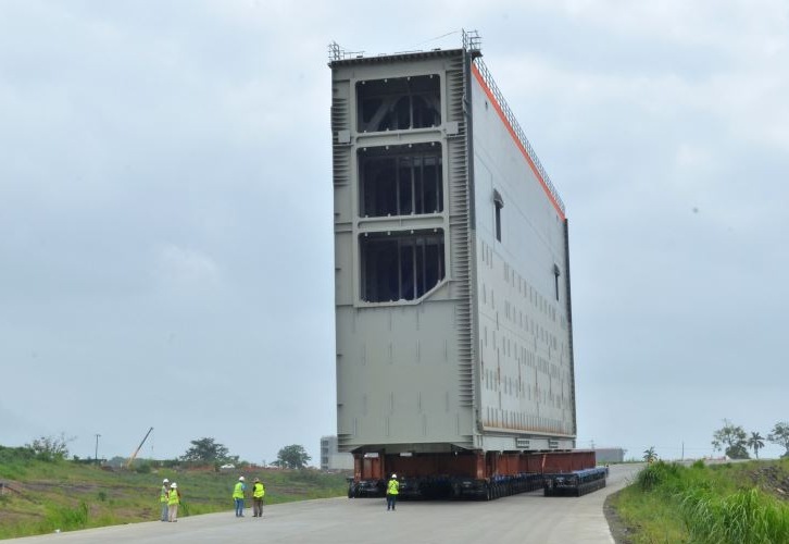 The Administrator explained that the process was carried out following rigorous safety measures to ensure that the more than 3,000-ton steel structures could be moved to the dry lock chambers using the pavement ramp built for this purpose. Eight of the 16 rolling gates that will be used for the new locks are already in Panama. The remaining eight will arrive in two separate shipments from its manufacturing site in Italy. In the next couple of days, the other gates will be moved from the temporary unloading dock to the dry lock chambers to be able to use the area for the arrival of the remaining lock gates. The Panama Canal Expansion Program is currently 77% complete.