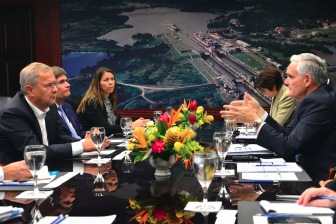 During the visit, the delegations discussed topics of strong mutual interest such as the environment, efficiency of maritime services and economies of scale. The Panama Canal fully supports the sense of environmental responsibility that both organization share. The Canal's fuel-saving shortcut has reduced the maritime carbon footprint for a century, beginning long before pollution and global warming became an issue. Maersk, through the improvement of the efficiency in their vessels design, operating procedures and other efforts to obtain substantial reductions in fuel consumption has become a leader in promoting a cleaner environment. For Maersk, Panama's route is vital because it reduces time and fuel consumption. The expanded Canal will permit the transit of bigger vessels through the waterway that will allow for a more efficient connectivity and savings through economies of scale. These efforts have resulted in less health-damaging pollution today as well as for future generations by reducing CO2 emissions. Both parties concurred that the "green" concept is here to stay and is an important part of each organization's future. This visit strengthens the relationship between these two major players in the maritime industry, which dates back to the early 20th century, when the first A.P. Møller vessels transited the waterway in 1917 and later established in 1934 a regular route between Baltimore to Asia through the Canal. "Maerk Line continues to be today one of the main customers of the Panama Canal," said Administrator Quijano. About the Panama Canal Authority (ACP) The ACP is the autonomous agency of the Government of Panama in charge of managing, operating and maintaining the Panama Canal. The operation of the ACP is based on its organic law and the regulations approved by its Board of Directors. For more information, please refer to the ACP's website: http://www.pancanal.com/. You can also follow us on Twitter @thepanamacanal. Panama Canal Authority press release