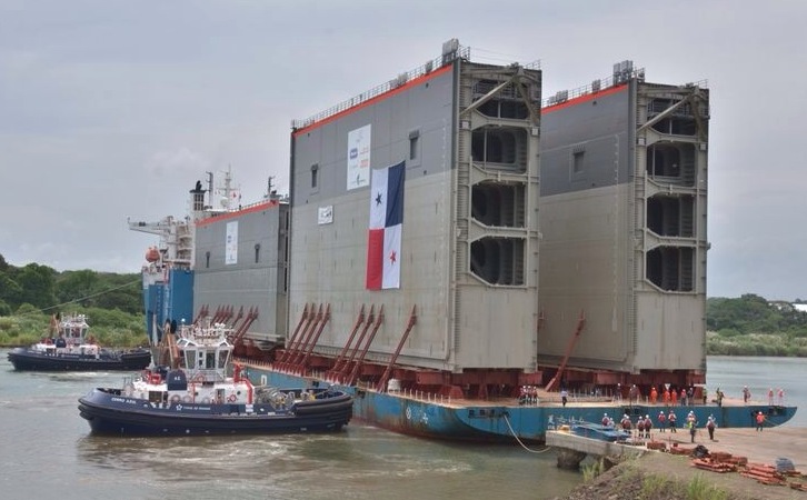 Panama, September 8, 2014 The third shipment of four gates for the new locks of the Panama Canal Expansion has arrived to the Atlantic entrance of the waterway. The four gates arrived Sunday on board the Post-Panamax vessel Xia Zhi Yuan 6 owned by COSCO Ocean Shipping. The shipment began its journey from Trieste, Italy on August 17 before crossing the Atlantic Ocean to reach the entrance of the Panama Canal, where they will be unloaded onto a special temporary dock. Only one shipment is left to receive all 16 gates required for the Third Set of Locks project.