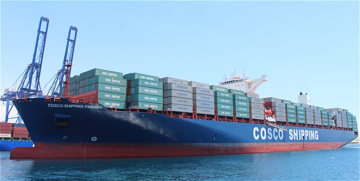 The 2016-built 9,472 teu Neopanamax containership "Cosco Shipping Panama". Image by Panama Canal Authority. |