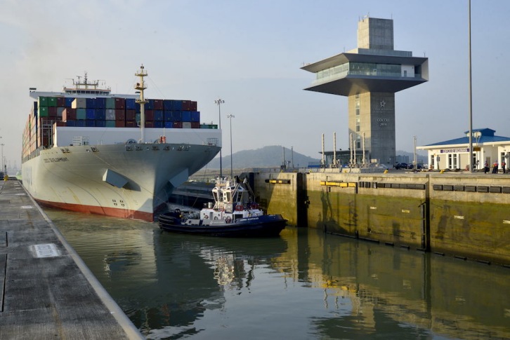The COSCO Development transiting the Panama Canal's Cocoli Locks, making it the largest vessel to transit the Expanded Canal. Image by ACP Similar to the Panama Canal, ports along the U.S. East Coast have also set tonnage records this year. The Ports of Savannah, Charleston and Virginia-which the COSCO Development will call on next week-have seen strong performance, in particular, due in part to the investments they have made to accommodate larger vessels passing through the Expansion. "Less than one year in, and the impact of the Expanded Canal is already evident across the world," said Mr. Quijano. "As liners continue to reroute services and consolidate cargo on larger vessels, we look forward to welcoming the increase of Neopanamax traffic with the same safe, reliable service our customers have come to expect." About the Panama Canal Authority The Panama Canal is run by an autonomous agency of the Government of Panama in charge of managing, operating and maintaining the Panama Canal. The operation of the Panama Canal Authority (ACP) is based on its organic law and the regulations approved by its Board of Directors. For more information, please refer to the ACP's website: http://www.pancanal.com or follow us on Twitter @thepanamacanal. About the Panama Canal Expansion The Panama Canal Expansion is the largest enhancement project since the Canal's opening in 1914. Considered and analyzed for a decade with more than 100 studies, the Expanded Canal provides the world's shippers, retailers, manufacturers and consumers with greater shipping options, better maritime service, enhanced logistics and supply-chain reliability. The Expansion included the construction of a new set of locks on the Atlantic and Pacific sides of the waterway, creating a third lane of traffic and doubling the cargo capacity of the waterway. While the expanded locks are 70 feet wider and 18 feet deeper than those in the original Canal, they use less water due to water-savings basins that recycle 60 percent of the water used per transit. In line with its commitment to customer service, the Panama Canal will continue to provide the world with value for another century and beyond. Panama Canal Authority press release |