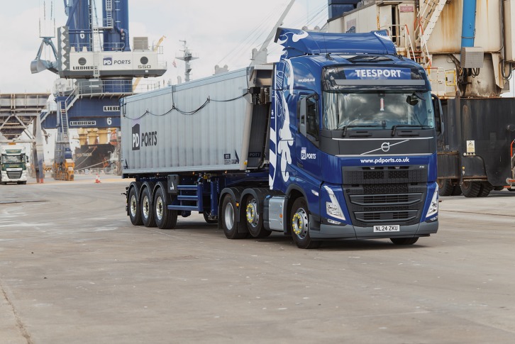 26 August 2024 A £1m investment in five specialist bulks tipper trucks has strengthened PD Ports' services for customers importing grain and powder products at Teesport. The STAS Agrostar bulk tipper trailers, designed for the unloading of complex compound products such as grain and powder, arrived this summer alongside five Volvo trucks. The investment highlights PD Ports' commitment to portcentric logistics and providing all customers at Tees Dock with an end-to-end service. An additional 10 drivers have also been employed to operate the trailers, with existing drivers in the transport team also undergoing extratraining. The STAS trailers have advanced safety features, including a pneumatic automatic tailgate which can be operated from inside the driver's cab for safety - the tailgate is also suspended by a double hinge which allows the door to swing up higher in order to avoid damage during the unloading process. Each trailer has a heavy duty, wear-resistant floor, fitted with underbody vibrators to help avoid product becoming stuck in the trailer and a PM1155 weighing system, operable by a remote control that can weigh the load to within 10kg. The new fleet of bulks tipper trucks is the latest in a series of investments in Tees Dock's bulks quay, including £9m on two 140t rail-mounted Liebherr electric-hydraulic mobile harbour cranes and self-propelled hoppers and additional load shovels, all of which have seen vessel discharge times improve along with wider efficiencies for customers. In support of the new fleet, PD Ports has also achieved TASCC Accreditation, the AIC Trade Assurance Scheme for Combinable Crops; additionally all drivers have also had product and TASCC training. The scheme aims to combine food/feed safety legal requirements with recognised industry good practice and specific customer requirements to provide confidence in the food/feed chain. Chris Poole, PD Ports transport manager (bulks), who has joined the company to run the new service with 20 years' experience in the haulage industry, said: "Bulk products are a huge part of our business at Tees Dock but until now we haven't had an inhouse transport service for free-flowing powder or grain.
