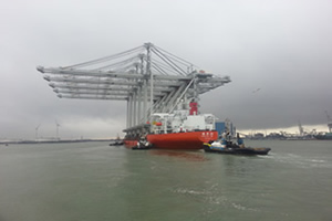 ZPMC divided its shipment over its own special transport vessels the Zhen Hua 14, which will start unloading 2 cranes for Rotterdam World Gateway (RWG) on Sunday, and the Zhen Hua 26, which will start unloading 5 cranes at the ECT Delta Terminal on the quayside of the Amazonehaven on Tuesday. The Cosco Da Kang started unloading 2 cranes at and for APM Terminal Maasvlakte on Sunday. Whereas ZPMC is delivering its cranes fully erect, Kalmar is supplying them in parts, which will be assembled at the terminal. RWG expects the following shipment of 14 cranes in total in February. During the first phase of the terminal, APMT will have 8 cranes at its disposal. ECT has a further 6 on order.
