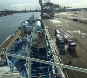 09 August 2016 Today - Tuesday 9 August - the bunkering (taking on fuel) of the Ternsund was initiated. It is the first sea-going vessel to bunker LNG (liquefied natural gas) in Rotterdam. As a result the brand new product tanker of the Swedish shipping company Terntank receives the first Rotterdam 'LNG bunkering incentive’; a premium amounting to a discount of ten percent on the seaport dues. On Sunday, the Ternsund arrived for the first time in Rotterdam to unload naphtha and gas oil at Vopak in the Botlek. Monday afternoon, the ship was shifted to the former home terminal of the ECT terminal at the Willem Alexanderhaven. This is where the bunkering will take place. First, the temperature of the fuel tank was 'cooled down'; from ambient temperature to operating temperature. With the aid of nitrogen, the temperature was reduced from +20 °C to -162 °C in eighteen hours. Then the actual bunkering of Shell LNG started. To this end, trucks drive between the Eemhaven and the Gate terminal (property of Vopak and Gasunie) on the Maasvlakte. The bunkering of the cleaner fuel will be completed on Wednesday morning. The vessel will then continue to Gothenburg. Next year, the Port Authority will welcome a new bunker vessel which Shell will use to supply sea-going vessels with LNG from the water. LNG in Rotterdam The Port of Rotterdam Authority is pleased that the first sea-going vessel is being bunkered with LNG (liquefied natural gas) in Rotterdam. The Port of Rotterdam Authority strives to turn the port into a major European LNG hub and promotes the transition from fuel oil to the much cleaner LNG as fuel for shipping. By using LNG, inland vessels, coasters, ferries and heavy transport reduce carbon dioxide (CO2) emissions up to 20 percent and nitrogen oxide (NOx) emissions up to 85 percent. Sulphur and particulate matter emissions are reduced to practically zero. This is an important reason for the Port of Rotterdam Authority to encourage the use of LNG. In the meantime, the Port Authority expects possible other sea-going vessels in Rotterdam to bunker LNG. The cost for the cleaner fuel is some 20 percent lower than elsewhere, and moreover, Rotterdam offers various incentives. The Environmental Ship Index and the LNG Bunkering Incentive each offer a premium worth 10 percent of the seaport dues.