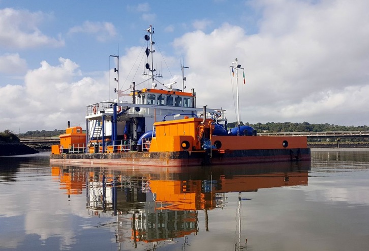 Water injection vessel Jetsed (Van Oord) takes part in trial in Calandkanaal. ©VanOord Water injection dredging