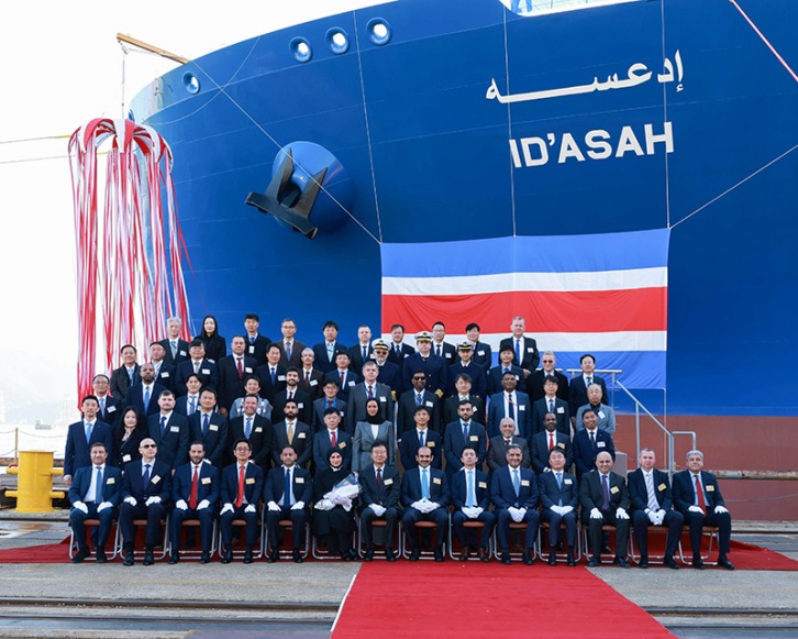 Doha, Qatar - 7 November 2024 QatarEnergy inaugurated four new conventional-size LNG vessels built in the Samsung Heavy Industries Shipyard and the Hanwha Ocean Shipyard in the Republic of Korea as part of QatarEnergy's historic fleet expansion program. The four new vessels, "Id'asah", "Nuaijah", "Umm Swayyah", and "Lebrethah" are part of 128 total vessels ordered from Korean and Chinese shipyards as part of the largest shipbuilding program in the history of the LNG shipping industry. The naming of the vessels took place in two separate ceremonies in the city of Geoje, the first of which was held at the Samsung Heavy Industries Shipyard for the "Id'asah", the first to be delivered by Samsung. In remarks at this ceremony, His Excellency Mr. Saad Sherida Al-Kaabi, the Minister of State for Energy Affairs, the President and CEO of QatarEnergy, said: "This very special occasion highlights the growth of QatarEnergy's strategic partnership with Samsung Heavy Industries and JP Morgan Asset Management's Global Transportation Group. This event is not only a milestone in our journey, but also a celebration of our partnership and joint commitment to deliver cleaner energy to the world."