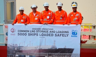 Doha – Qatar, April 05, 2015 Marking yet another significant milestone for Qatar’s LNG industry, the 5000th LNG cargo from the Common LNG Storage and Loading Asset in Ras Laffan Industrial City was recently loaded on board the Q-Flex vessel ‘AL KARAANA’ at Ras Laffan port. Operated by Qatargas, the Common Lean LNG storage and loading facilities were built to store and load LNG produced from Qatargas’ seven LNG production trains and RasGas Trains 6 and 7. The LNG is loaded from berths 1, 3, 4, 5 and 6 at Ras Laffan port and delivered to Qatargas’ and RasGas’ customers across the globe. To mark the 5000th loading milestone, a brief ceremony was held on board ‘AL KARAANA’ attended by senior officials from Qatargas and RasGas and the Ship Master. The Common LNG storage and Loading facilities include twelve LNG tanks, eight of which have a storage capacity of 140,000 cubic metres each and four with a capacity of 85,000 cubic meters each. The facility also recovers Boil-Off gas (BOG) from the LNG tanks. The recovered gas is supplied to the LNG trains as fuel gas. Five LNG loading berths are also part of the facility. In addition, the Common LNG storage and Loading facilities also operate the jetty boil-off gas recovery units, which recover boil-off gas during LNG ship loading, compress it and send it back to the LNG ventures to be used as fuel gas. The celebration of the 5000th cargo demonstrates Qatargas’ operational excellence and commitment to the safe storage and loading of LNG from Qatar to customers across the world. It is also reflects the synergies and collaboration between the LNG producers in Ras Laffan. Qatargas press release