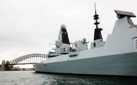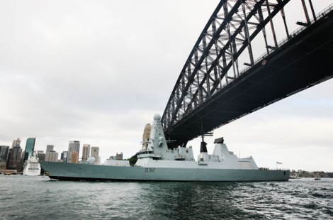 Since arriving in Sydney last Friday, Daring has taken part in two ceremonial reviews – the first recreated the entry by the inaugural RAN Fleet in 1913, the second was a more traditional fleet review witnessed by Prince Harry – services of commemoration for Australian sailors killed in the line of duty and a parade through the heart of Sydney with 4,000 seafarers from around the world. Mr Madden says all the Royal Navy’s participants in the week-long events in Sydney had been a credit to the country. “Britain turned out in style to support the event,” he stressed. “The Band of HM Royal Marines drew many admiring glances as they marched through the streets of Sydney on parade with 4,000 sailors. “Their musicianship and the precision of their drill demonstrated clearly why they are generally held to be the best military band in the world.” Daring hosted various receptions for business and political leaders in Sydney and Melbourne and will do the same in Adelaide, and welcomed a lot of media aboard – resulting in considerable coverage for the RN Down Under. “HMS Daring was busy all week. We really took advantage of having such a splendid Royal Navy asset in town,” Mr Madden added. Among the more symbolic acts of Daring’s stay in New South Wales was the return of a plaque which once hung in Sydney’s Admiralty House. At a special reception aboard the Type 45, Britain’s most senior sailor First Sea Lord Admiral Sir George Zambellas and Jonathan Perceval-Maxwell, the great grandson of Admiral Sir George King-Hall – regarded as the father of the RAN – presented the ‘Admiral’s Office Australia’ plaque to Vice Admiral Ray Griggs, today’s head of the Commonwealth nation’s Navy. The plaque was affixed to Admiralty House during Britain’s command at the Australia Station and spent a century in the UK after Admiral Sir George King-Hall, the last British Commander-in-Chief of the Australia Station in 1913, returned with it to England when the Royal Navy departed Australia. At the request of Sir George King-Hall’s family, the plaque, carved from a single block of wood, was returned to the Royal Australian Navy. Royal Navy press release |
