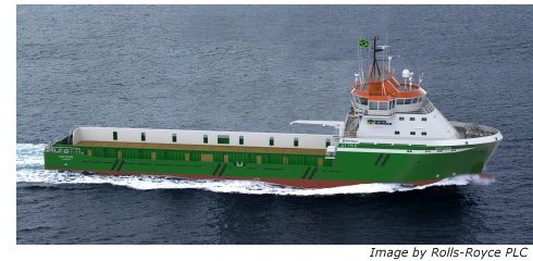 In addition to the design, Rolls-Royce will supply a wide range of onboard equipment including Azipull and bow thrusters, deck machinery, a bulk handling system, Active Front End (AFE) frequency converters, automation and control systems and a dynamic positioning system. Following the successful delivery of the Rolls-Royce designed Mar Limpo II on schedule to Petrobras in August, Bravante Group now has eight Rolls-Royce vessels under construction at their São Miguel shipyard. 1. Rolls-Royce is a world-leading provider of power systems and services for use on land, at sea and in the air, and has established a strong position in global markets - civil aerospace, defence aerospace, marine and energy. 2. As a result of this strategy, Rolls-Royce has a broad customer base comprising more than 500 airlines, 4,000 corporate and utility aircraft and helicopter operators, 160 armed forces, more than 4,000 marine customers, including 70 navies, and energy customers in more than 80 countries. 3. Annual underlying revenue was £11.3 billion in 2011, of which more than half came from the provision of services. The firm and announced order book stood at £60.1 billion at 30 June 2012, providing visibility of future levels of activity. 4. Rolls-Royce employs over 40,000 people in offices, manufacturing and service facilities in over 50 countries. Over 11,000 of these employees are engineers. 5. Rolls-Royce supports a global network of 28 University Technology Centres, which connect the company’s engineers with the forefront of scientific research. 6. The Group has a strong commitment to apprentice and graduate recruitment and to further developing employee skills. Rolls-Royce Group plc press release |