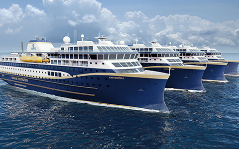 25 October 2018 The Norwegian ship owning company Havila Kystruten AS, has ordered four new build Ro-Pax vessels of Havyard 923 design. Rolls-Royce Commercial Marine will provide power and propulsion for all four ships. From January 2021, Havila Kystruten will operate four ships on the coastal route between the cities of Bergen in south western, and Kirkenes in northern, Norway. The company has contracted Spain’s Astillero Hijos de J. Barreras shipyard to build two of the cruise ferries and Turkey’s Tersan yard to construct the remaining two. Rolls-Royce will provide a fully integrated LNG power and propulsion solution to all four ships. This includes two LNG fuel tanks with process system, and control and safety systems, four Bergen gas engines, main propulsion thrusters of type Azipull with Permanent Magnet (PM) drive motor, PM tunnel thrusters, and stabilisers of type Neptune 200. The main propulsion thrusters with integrated PM motors are developed in close cooperation with ship designers, to ensure optimal integration with the hull. The energy efficient tunnel thrusters allow for a slimmer hull shape due to their narrow design, which fits well with the project’s overarching goal of energy efficiency and low emissions. The low noise and vibration levels of the PM tunnel thrusters combined with the roll damping effect of the stabilisers, will benefit the comfort of both passengers and crew. The LNG Fuel System from Rolls-Royce will supply Bergen gas generator sets. Each vessel will have two engines with nine in-line cylinders, and two with six cylinders. The engines can operate on variable speed to reduce both fuel consumption and emissions. The Bergen engines series is in operation across a range of vessel types today, including cargo vessels, PSVs and tugs as well as passenger vessels. Two separate LNG fuel systems are designed in cooperation with the ship owner and include flexibility to bunker both tanks from the same side of the ship, as well as the option to supply the front and aft machine rooms from both tanks. This ensures high redundancy and flexibility during operation. Steinar Oppedal, Technical Product Manager for LNG Fuel Systems, Rolls-Royce – Commercial Marine said: “Havila Kystruten has chosen a LNG fuel system that builds on our long experience with these type of systems, designed to be robust and reliable in rough weather conditions. No less important is the fact that the system and its engines will provide a significant reduction in emissions compared to conventional diesel engines.” The chosen Bergen engines series reduces total greenhouse gas (GHG) emissions by about 20 per cent compared to a similar diesel engine, and is IMO Tier 3 compliant. The whole LNG System is designed for safety with double walled stainless steel containment. In May 2018 the Norwegian government awarded 11 new licenses for the renowned passenger and cargo route from Bergen in the southwest to Kirkenes in the north. For the first time, the licenses have been split between two operators, and new entrant, Havila won four of the 11 licenses. The route has, since its beginning in 1884, kept coastal Norway connected, with 34 ports seeing daily ship calls. The new agreement starts in January 2021, and a key requirement from the Ministry of Transportation has been to reduce CO2 emissions. About Rolls-Royce Holdings plc 1. Rolls-Royce pioneers cutting-edge technologies that deliver the cleanest, safest and most competitive solutions to meet our planet’s vital power needs. 2. Rolls-Royce has customers in more than 150 countries, comprising more than 400 airlines and leasing customers, 160 armed forces, 4,000 marine customers including 70 navies, and more than 5,000 power and nuclear customers. 3. Annual underlying revenue was £15 billion in 2017, around half of which came from the provision of aftermarket services. The firm and announced order book stood at £78.5 billion at the end of December 2017. 4. In 2017, Rolls-Royce invested £1.4 billion on research and development. We also support a global network of 31 University Technology Centres, which position Rolls-Royce engineers at the forefront of scientific research. 5. Rolls-Royce employs 55,000 people in 50 countries. More than 19,400 of these are engineers. 6. The Group has a strong commitment to apprentice and graduate recruitment and to further developing employee skills. In 2017 we recruited 313 graduates and 339 apprentices through our worldwide training programmes. Rolls-Royce Group plc press release |