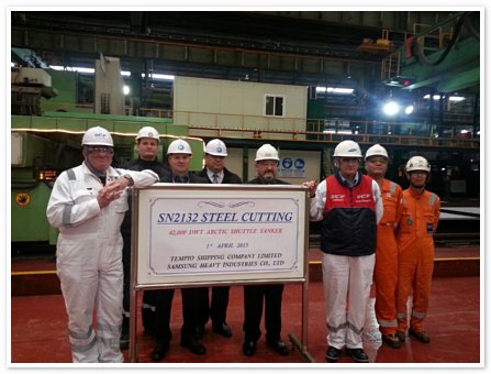 7 April 2015 The construction of the series comprising six Arctic shuttle oil carriers (project 42K Arctic Shuttle Tanker) has been commenced in South Korea. The steel cutting ceremony for the first ship in the series was held on 1 April 2015 at Samsung Heavy Industries shipyard in the presence of the representatives of PAO Sovcomflot, Russian Maritime Register of Shipping (RS) and Lloyd`s Register (LR). The series is constructed to dual RS and LR class. RS class notation: KM Arc7 AUT1-ICS OMBO LI CCO ECO-S BWM BLS-SPM Oil tanker (ESP) CSR. Main particulars: • Length – 232 m; • Breadth – 34 m; • Draught – 9.5 m; • Gross tonnage – 42000. The new tankers are designed to complete a set of tasks of hydrocarbons transportation from Novoportovskoye field. It is planned to put the first ship into operation in June 2016. It is the fifth largest shipbuilding project under survey of the RS Branch Office in the Republic of Korea since a specialized Design and Newbuilding Support Centre in Busan was opened by RS in March 2012. Russian Maritime Register of Shipping (RS) press release |