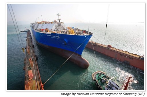 The prototype ship of a series of four modern liquefied natural gas (LNG) carriers “VELIKIY NOVGOROD” has been launched in South Korea. The ship will have the dual class of Russian Maritime Register of Shipping (RS) and Lloyd’s Register. RS class notation: KM Ice2 AUT1 OMBO EPP ANTI-ICE LI CCO ECO-S WINTERIZATION(-30) Gas carrier type 2G (methane).