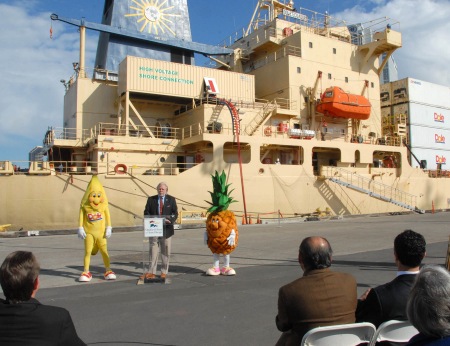 The installation of shore power has substantial environmental benefits: • Reduces greenhouse gas emissions by over 50% (more than 2,000 metric tons) per year. That's equivalent to greenhouse gas emissions from about 1,500 cars per year • Reduces emissions of nitrogen oxides (NOx; an air pollutant) by approximately 95% or 70 tons per year. That's equivalent to NOx emissions from over 4,000 cars per year Speakers at the ribbon cutting ceremony also included U.S. Congressman Scott Peters, City of San Diego Interim Mayor Todd Gloria, Dole Vice President Stuart Jablon and Environmental Health Coalition Executive Director Diane Takvorian. The new shore power system will allow refrigerated cargo ships – including those from Dole Fresh Fruit – to "plug in" and use electrical power from SDG&E instead of relying on diesel fuel engines while at berth. This will reduce greenhouse gas emissions and improve air quality around Tenth Avenue Marine Terminal, with the community of Barrio Logan being the closest impacted neighborhood. This project fulfills a mandate set forth by the California Air Resources Board requiring California ports and terminals to provide shore power to container, passenger and refrigerated-cargo ships. The Port of San Diego is already equipped to provide shore power to cruise ships that berth at both its B Street Pier Cruise Ship Terminal and Broadway Pier. About the Port: The Port of San Diego is a unified district encompassing five member cities surrounding San Diego Bay. A public agency, the Port is charged by the State of California with developing the tidelands and commercial business as steward of the public-trust tidelands along 33 miles of San Diego Bay. We share the waterfront with the Navy, which oversees 18 miles of San Diego Bay. We have guided the development of this prime waterfront property with a carefully selected portfolio of world-class commercial real estate, maritime and public uses. Our 16 hotels, 25 marinas, numerous restaurants, tours and museum attractions operate side-by-side with a working waterfront of boatyards, sportfishing landings and marine cargo terminals. We also maintain 20 public parks as amenities that attract visitors and enhance the value of our waterfront. Port of San Diego press release |